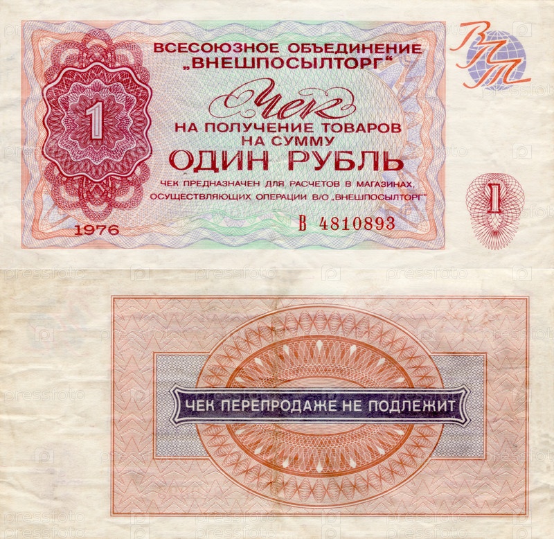 Разменный чек Внешпосылторг 1 рубль 1976 года