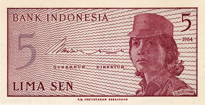 Банкнота Индонезия 5 сен 1964 год лицевыя сторона