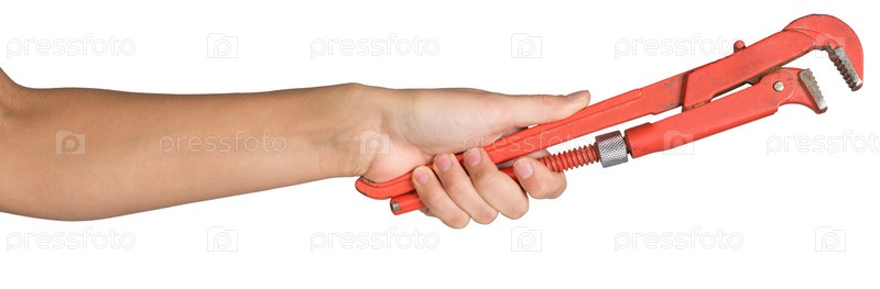 Женские руки держат газовый ключ