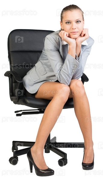 Бизнес-леди в кресле на белом фоне