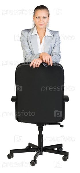 Бизнес-леди в кресле на белом фоне