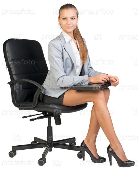 Бизнес-леди в кресле на белом фоне