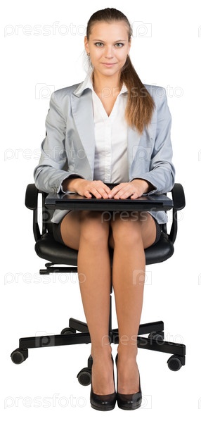 Бизнес-леди в кресле на белом фоне