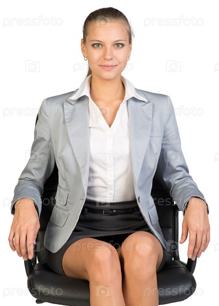 Бизнес-леди в кресле на белом фоне