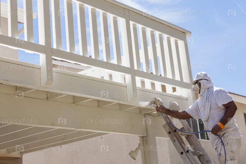 Маляр красит дом