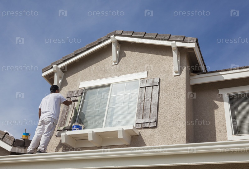 Маляр красит дом