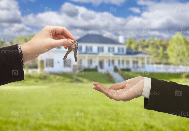 Агент передает ключи от нового дома