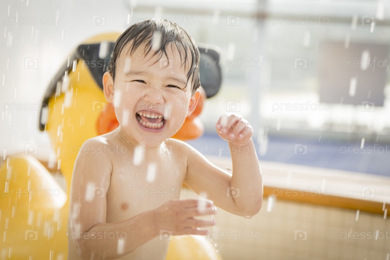 Мальчик смешанной расы в водном парке