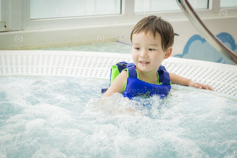 Мальчик смешанной расы в водном парке