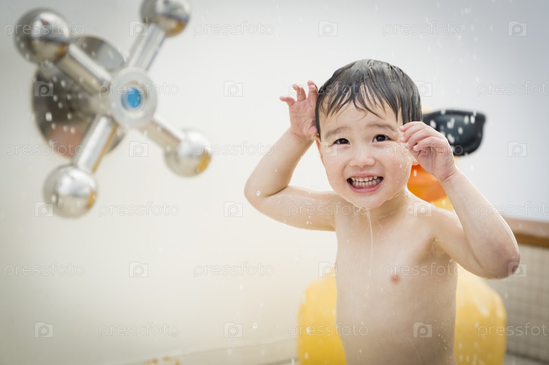 Мальчик смешанной расы в водном парке