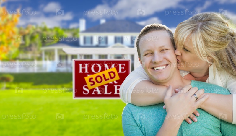 Счастливая пара на фоне нового дома