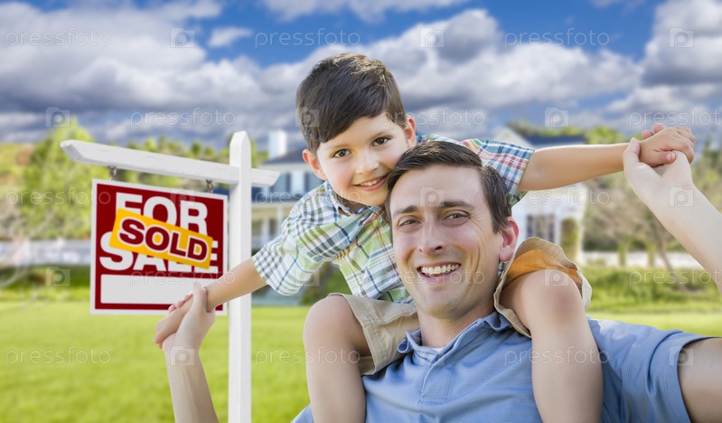 Отец и сын на фоне нового дома