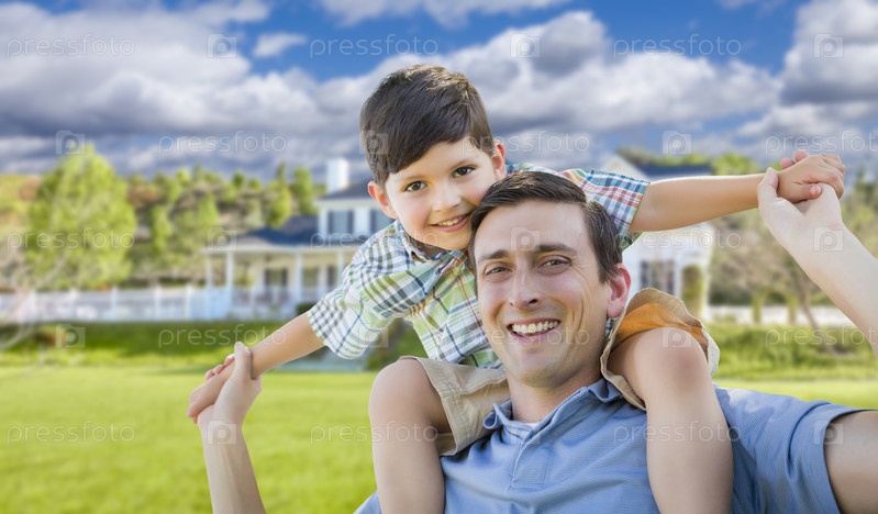 Отец и сын на фоне нового дома