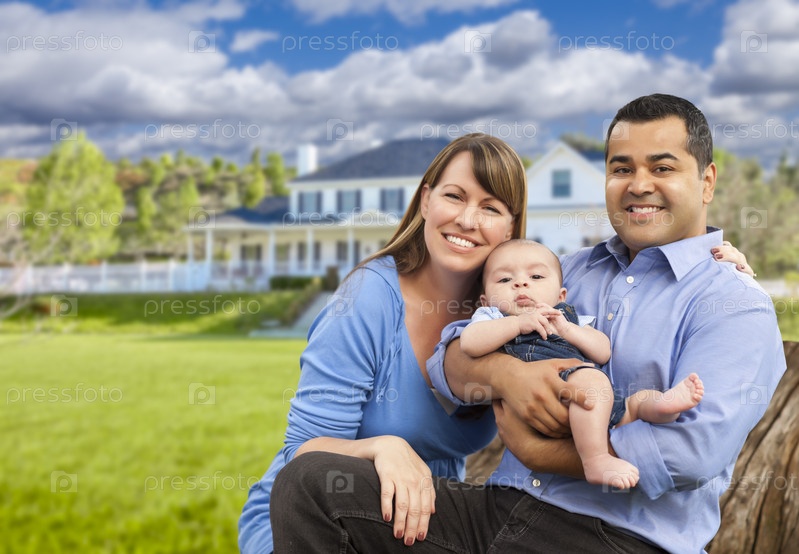 Молодая семья перед новым домом