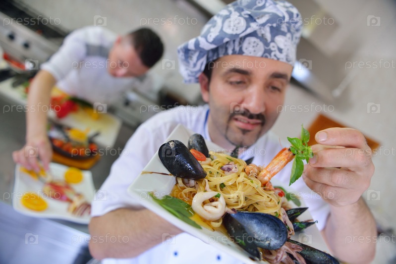 Шеф-повар готовит блюдо