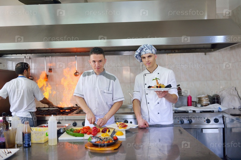 Повара готовят блюда в кухне