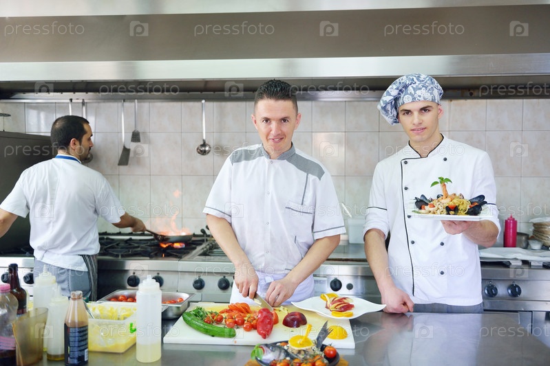 Повара готовят блюда в кухне