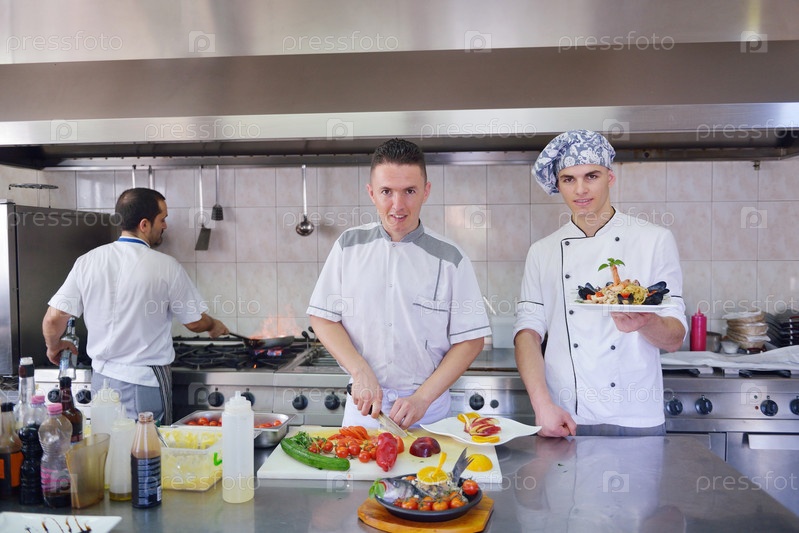 Повара готовят блюда в кухне