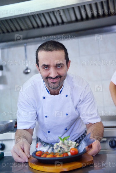 Шеф-повар готовит блюдо