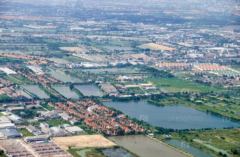 Вид сверху на рисовые поля в окрестностях Бангкока