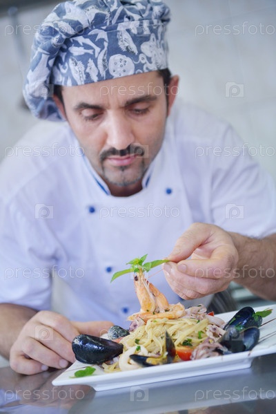 Шеф-повар готовит блюдо