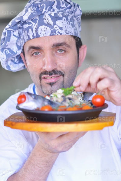 Шеф-повар готовит еду