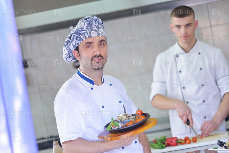 Шеф-повар готовит еду