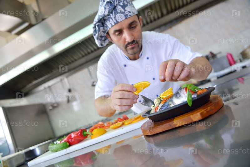 Шеф-повар готовит еду