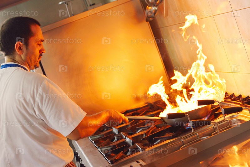 Шеф-повар готовит блюдо