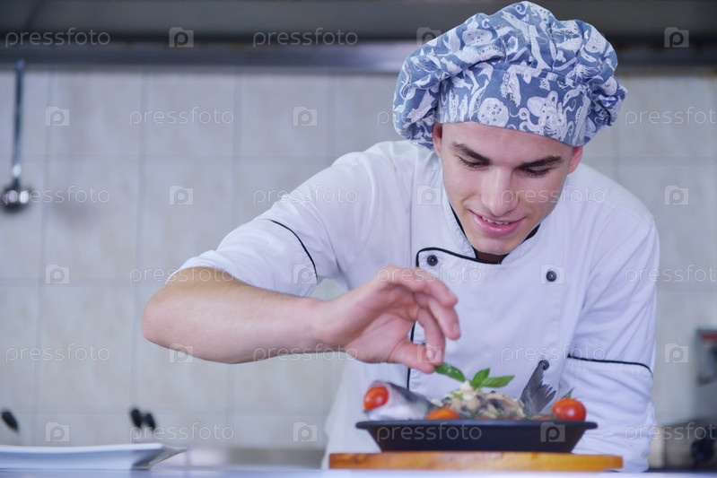Шеф-повар готовит блюдо
