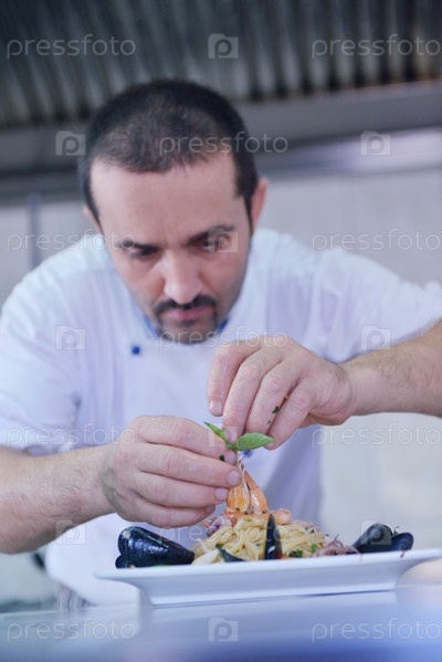 Шеф-повар готовит еду