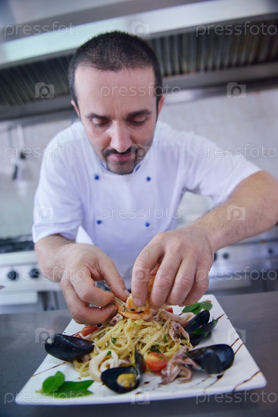 Шеф-повар готовит блюдо