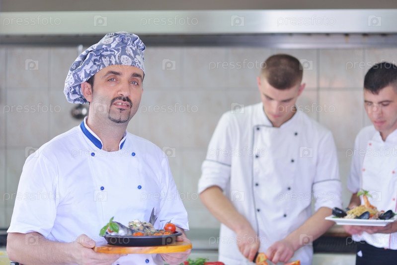 Шеф-повар готовит еду
