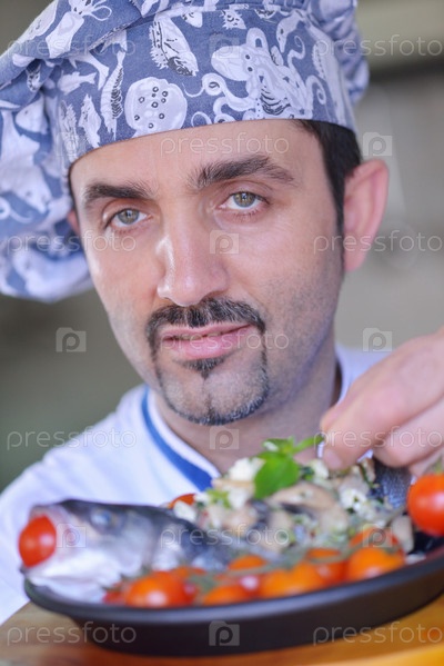 Шеф-повар готовит еду