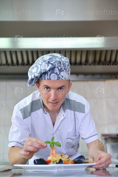 Шеф-повар готовит блюдо