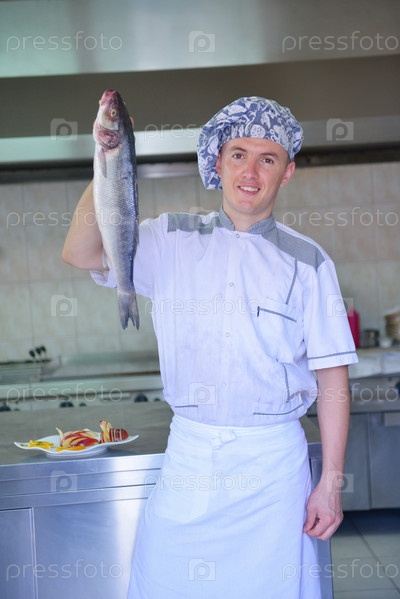 Шеф-повар готовит рыбу
