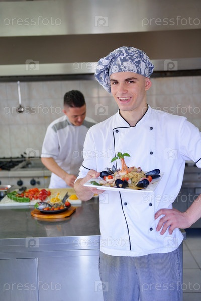 Шеф-повар готовит еду