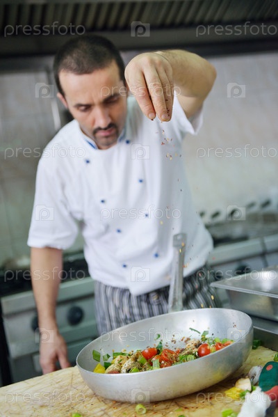 Шеф-повар готовит блюдо