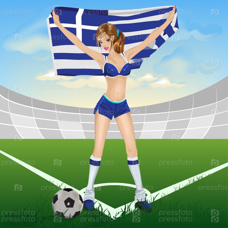 Футбольная болельщица с флагом Греции