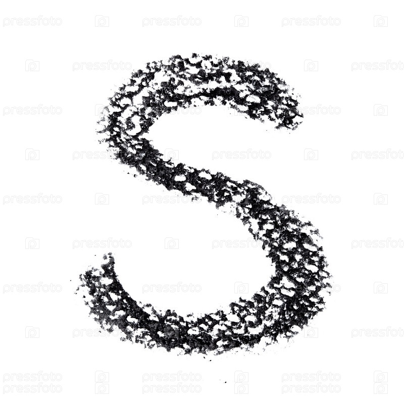 Алфавит, написанный углем на белом фоне: буква S