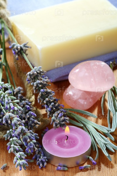Лавандовые аксессуары на деревянном столе