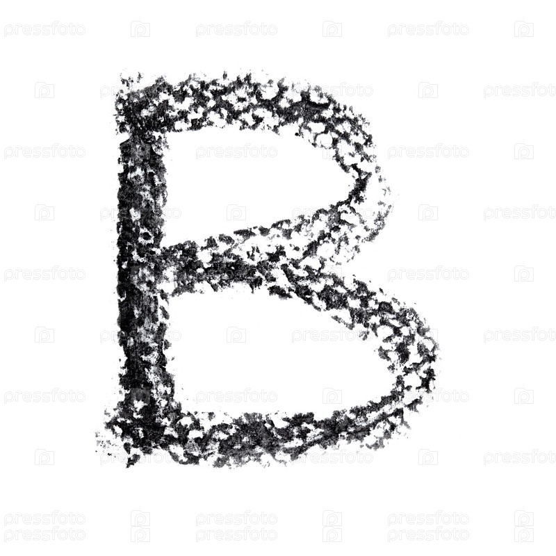 Алфавит, написанный углем на белом фоне: буква B