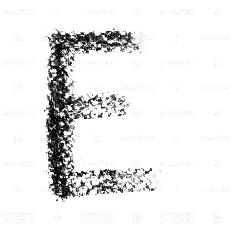 Алфавит, написанный углем на белом фоне: буква E