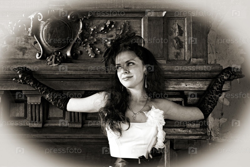 Девушка в элегантном платье, черно-белый снимок