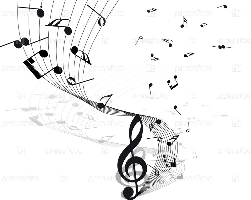 Нотный стан с ключом и нотами на белом фоне
