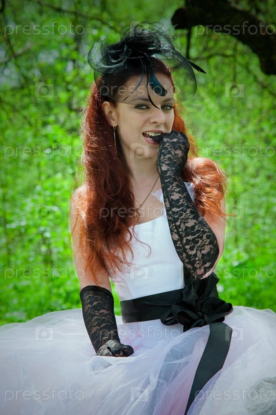 Невеста в элегантном платье на открытом воздухе