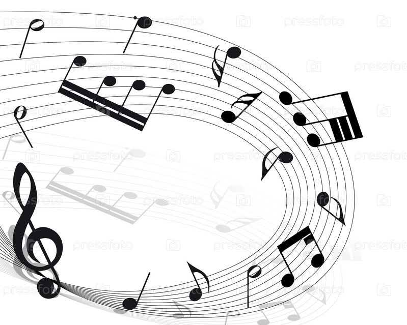 Нотный стан с ключом и нотами на белом фоне