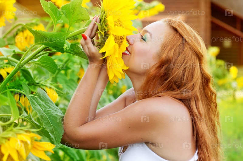Портрет яркой девушки с подсолнухами