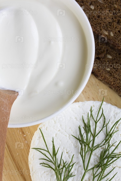 Свежая сметана и ржаной хлеб