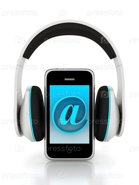 Смартфон с наушниками на белом фоне